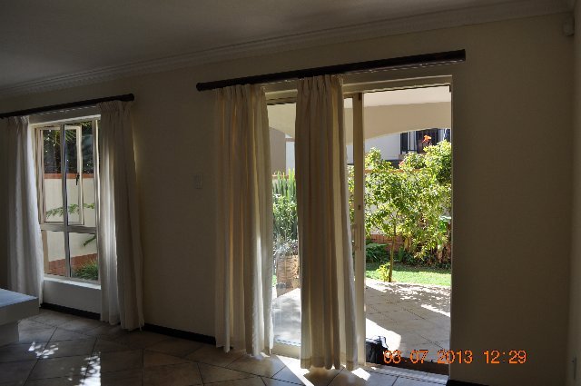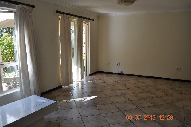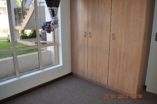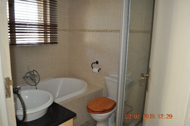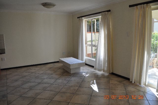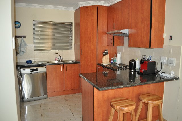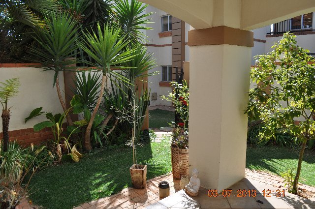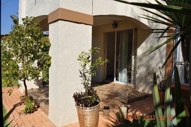 This sunny apartment is in a 24hr security complex in Faerie Glen. It has 2 bedrooms, 1 full bathroom, lounge, dining room, open plan kitchen, covered patio, enclosed garden and one automated garage. The complex has a swimming pool, clubhouse and braai and ample visitors parking.