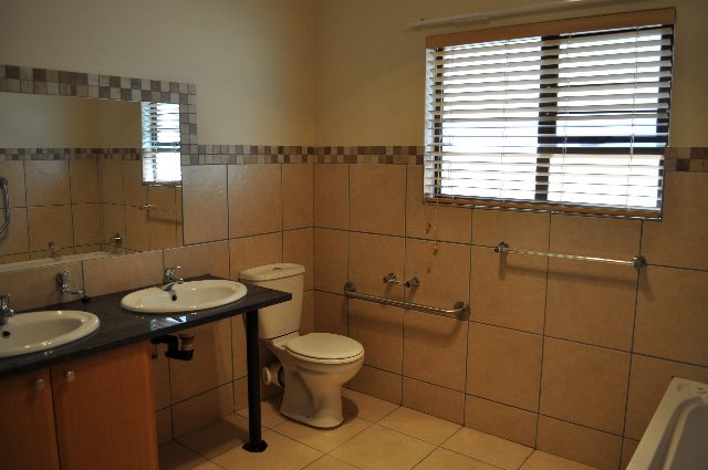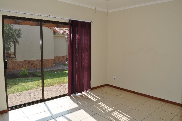 This lovely townhouse is in a very upmarket retirement estate. It has 2 large bedrooms, a full bathroom which is wheelchair friendly, spacious living area, lovely open plan kitchen with enclosed courtyard, a covered patio, one carport and one open parking.